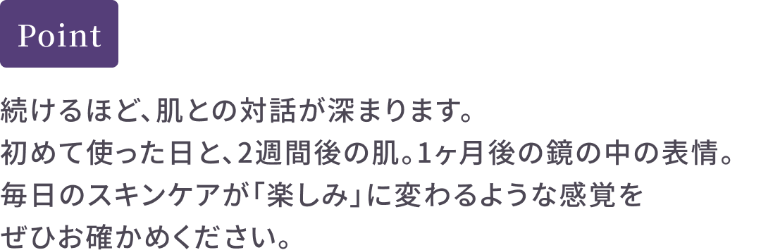 朝晩のスキンケアの最初にご使用いただくのがおすすめです。洗顔後、化粧水の前に塗布することで、後から使う化粧品の浸透も助けます。