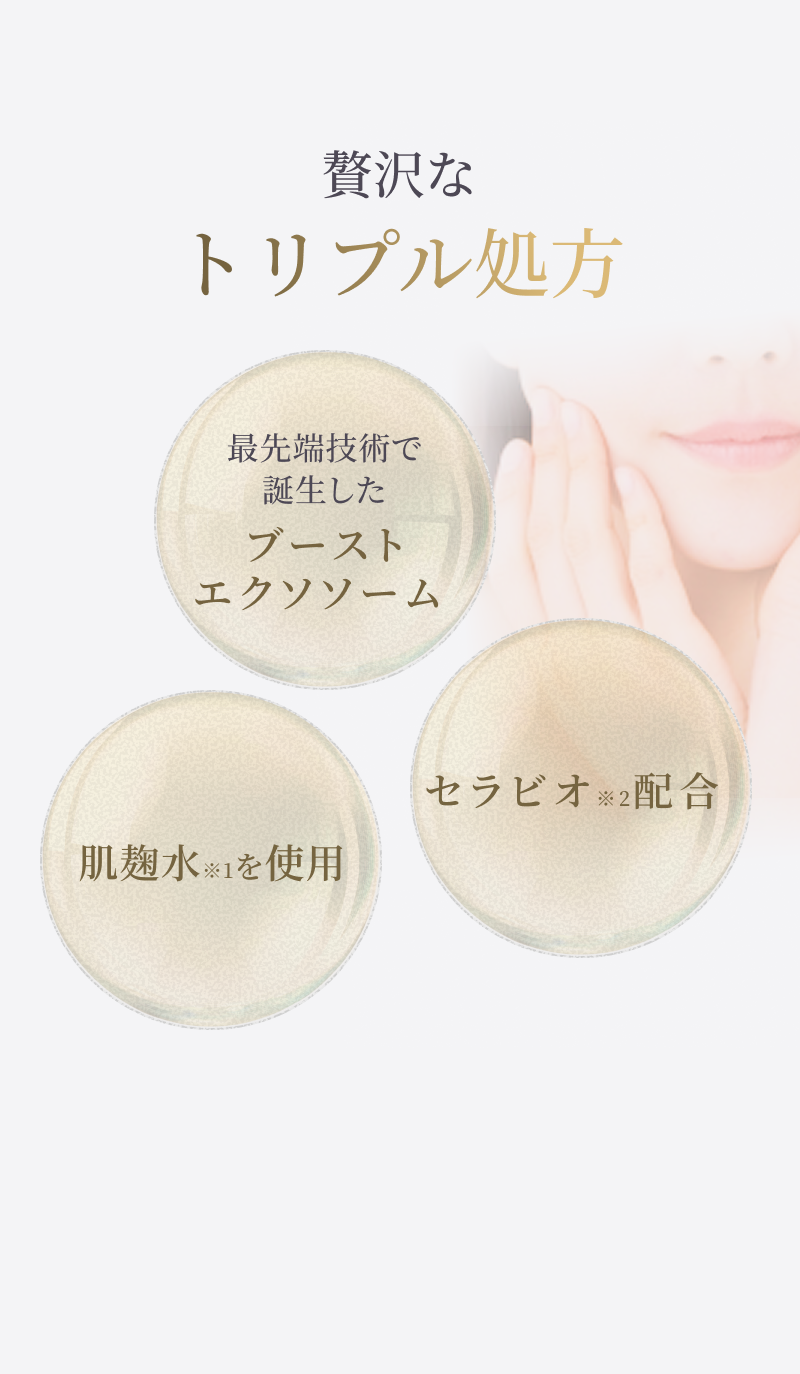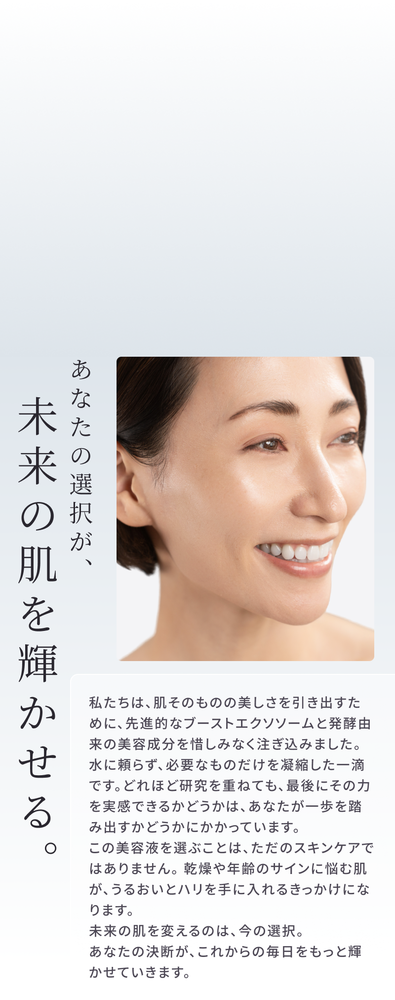 ️ブーストエクソソーム美容液は、水をほぼ使わず美容成分95%※で設計された高濃度処方です。