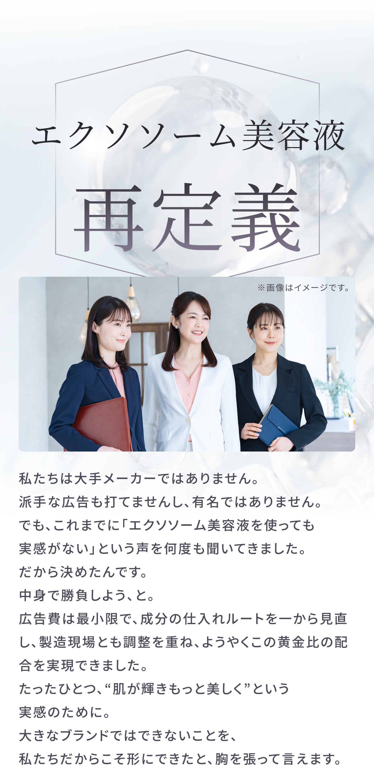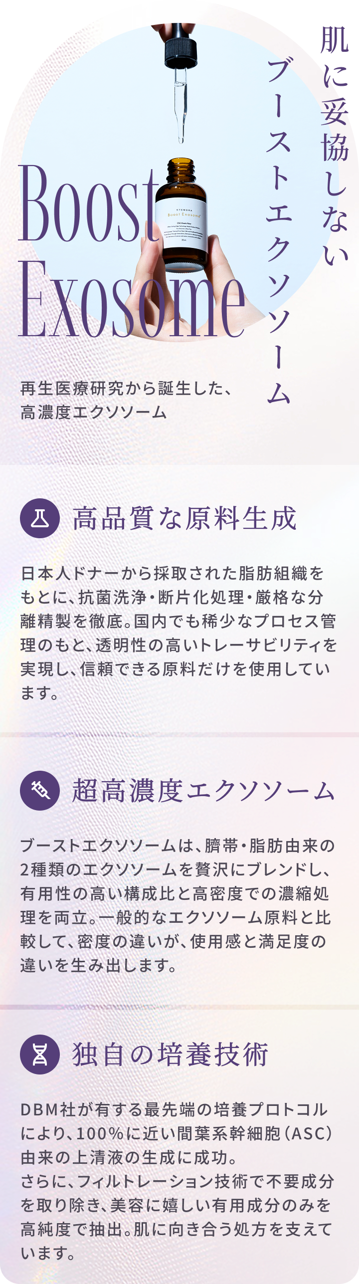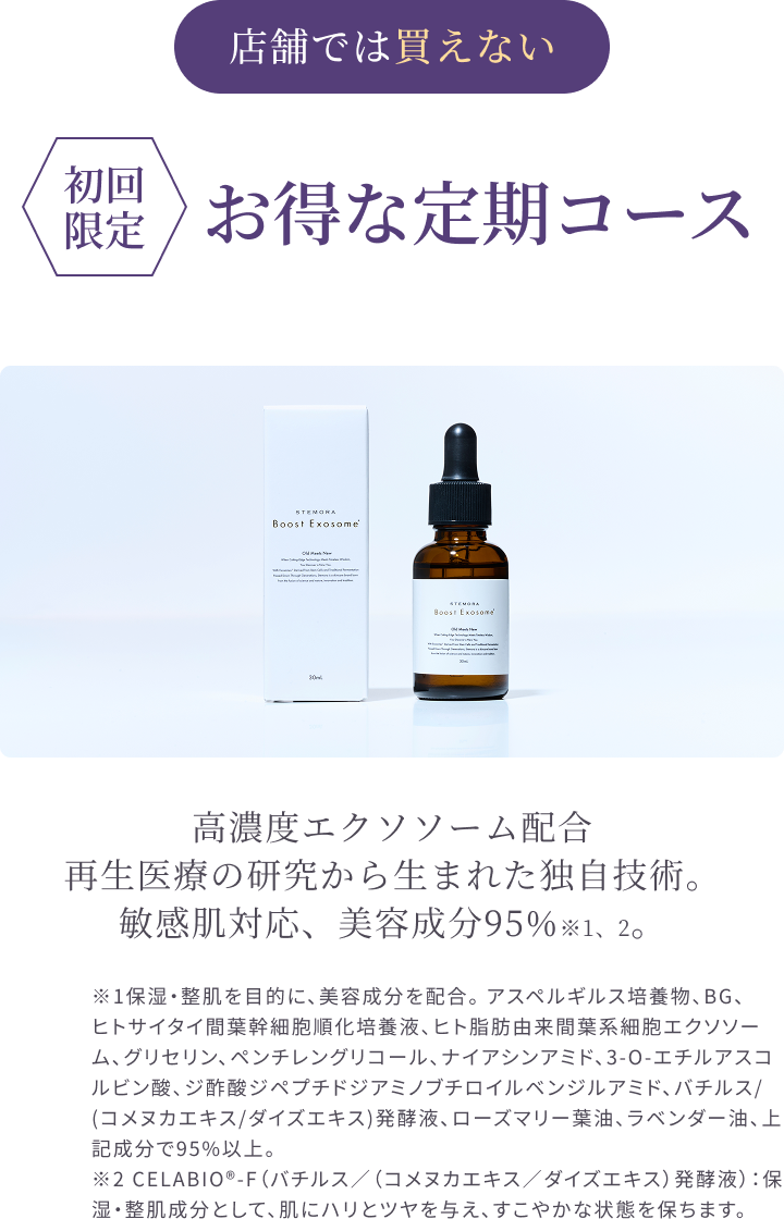 ️ブーストエクソソーム美容液は、水をほぼ使わず美容成分95%※で設計された高濃度処方です。