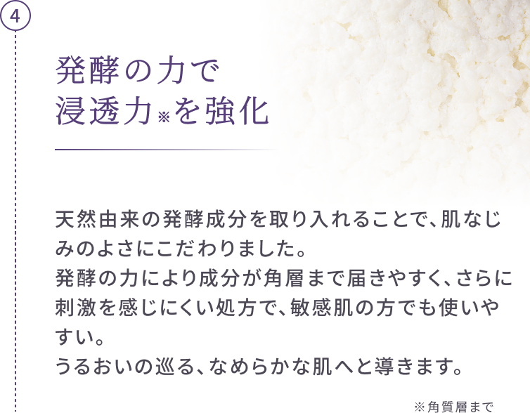 肌へのなじみやすさと、角層まで届く浸透設計が特長です。
